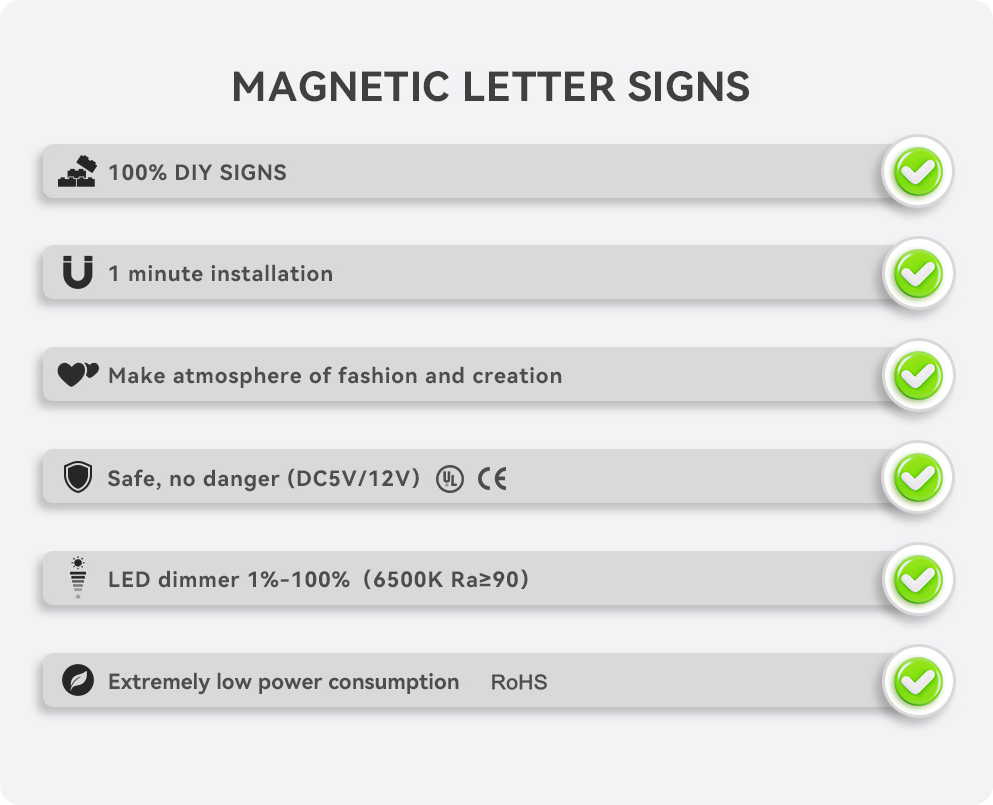 Magnetic LED Letter,ABCDEFGHIJKL MNOPQRSTUVWXYZ1234567890%.❤️🎄👫👍🏻