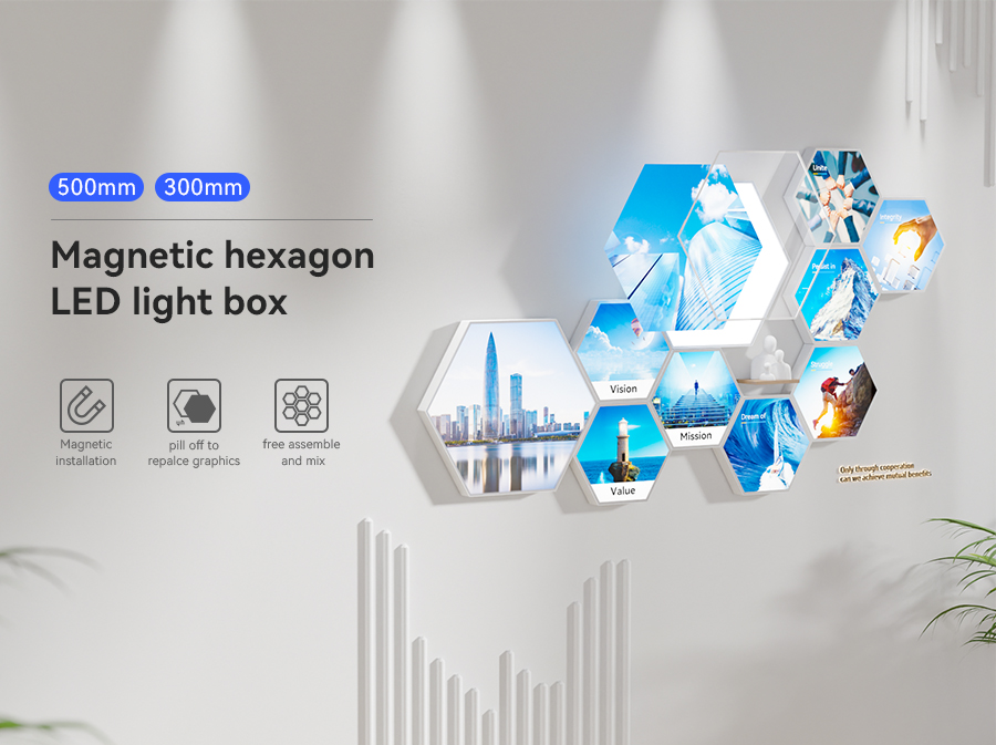 Magnetic hexagon LED light box